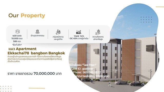 DSL-257 ประกาศขาย APARTMENT ห้องพัก อพาร์ทเม้นท์ ซอยเอกชัย 78 ใกล้กับ ใกล้ Makro สาขาบางบอน, โรงพยาบาลบางปะกอก 8, มีโรงงานมากมายโดยรอบ โดยสามารถใช้ทางเข้า-ออกจากทางถนนกาญจนาภิเษก หรือจากทางถนนเอกชัย-บางบอนได้ 70000000 BAHT 386นอน ขนาดเท่ากับ 87 ตร.ว