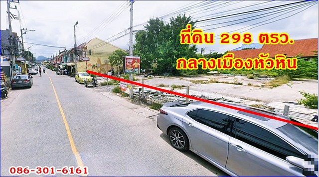 ที่ดินหายาก ทำเลธุรกิจ ค้าขายได้ ติดถนนใหญ่กลางเมืองหัวหิน ติดถนน2ด้าน 298 ตรว. ซ.หัวหิน94 โทร 086-301-6161