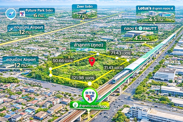 เหมาะลงทุน ที่ดินถมแล้วให้เช่า รถไฟฟ้า BTSคูคต 500ม.ใกล้คลองสอง โกดัง โลจิสติกส์ ขนาด 5 ไร่ ลำลูกกา21-27