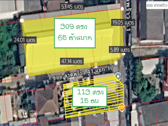 ขายที่ดินแปลงหัวมุมพร้อมหน้าร้าน 113 ตรว. ลาดพร้าว 41 หน้าปากซอยมีรถไฟฟ้า สถานีภาวนา
