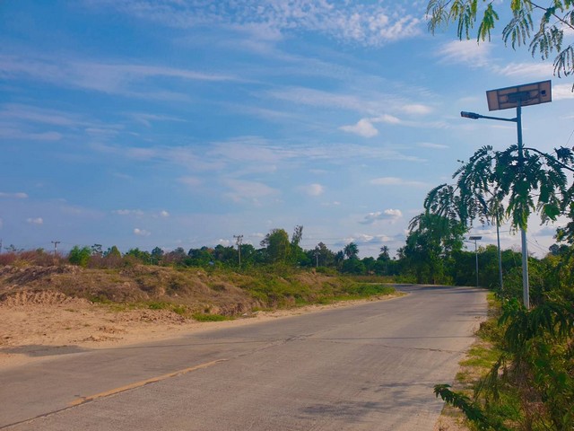 ด้านติดถนนลาดยาง 2 ด้าน (ด้านกว้างทางเข้า 90 ม.