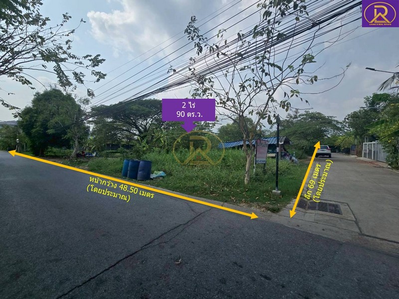 LVD-S0201: ขายถูกมาก! ที่ดินแปลงสวย พื้นที่สีม่วง 2 ไร่ 90 ตร.ว. เหมาะสร้างบ้านพัก หรือสร้างบ้านขาย ติดถนน 2 ด้าน เข้าซอยเพียง